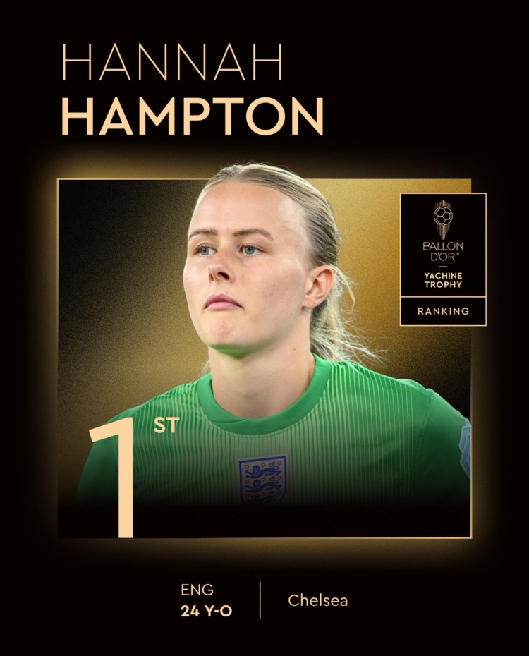 官方消息,切尔西、英格兰女足的汉普顿获得2025年女足雅辛奖。值得一提的是,汉普顿天生患有斜视,从小到大做过多次眼睛手术,她却能克服重重困难夺得女足门将的最高荣誉。
