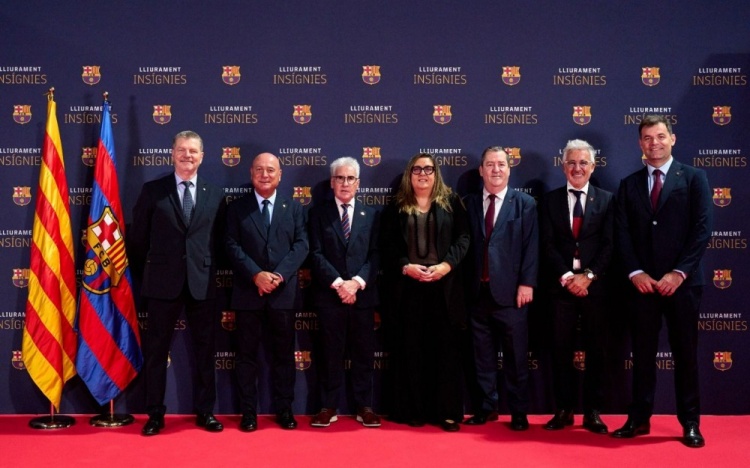 机构副主席埃莱娜-福特、社交领域副主席安东尼奥-埃斯库德罗、橄榄球主管何塞普-玛丽亚-阿尔伯特、社交领域主管何塞普-伊格纳西-马西亚、女子足球主管哈维尔-普吉、手球主管董事琼-索莱以及青少年足球主管董事琼-索勒,共同在巴塞罗那篮球馆举办的隆重仪式上完成了奖章颁发。在诺坎普球馆举行的这场仪式上,巴萨吉祥物到场助兴,两位主持人以及大屏幕上的不同视频播放也为活动增添了氛围。